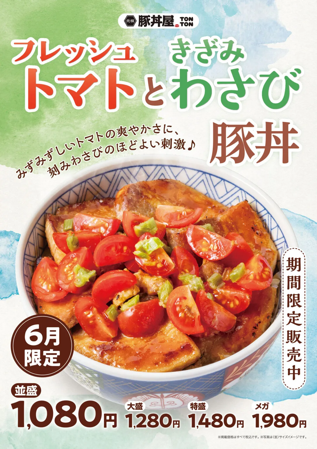 6月限定メニュー「フレッシュトマトときざみわさび豚丼」登場。
